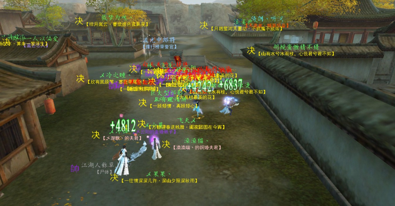 21:45分左右,轮回势力与决战势力在幻化流光城内处交战,轮回方在火力上占据优势,双方打的非常激情。