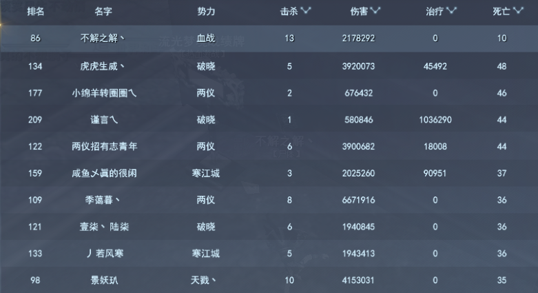 个人榜——死亡