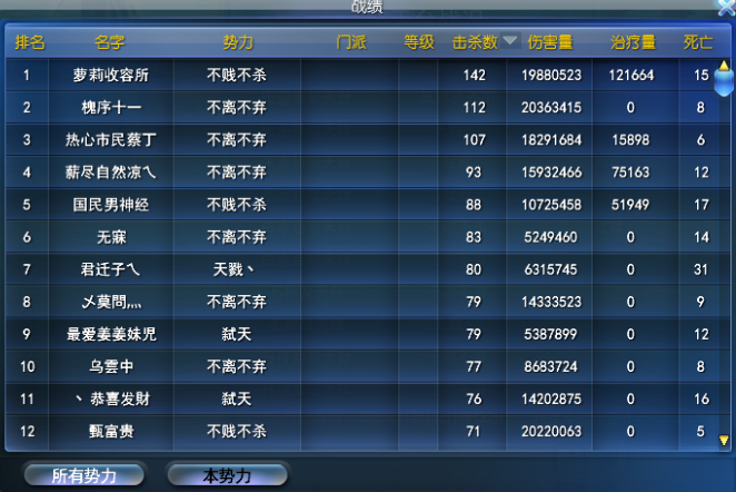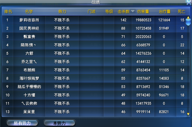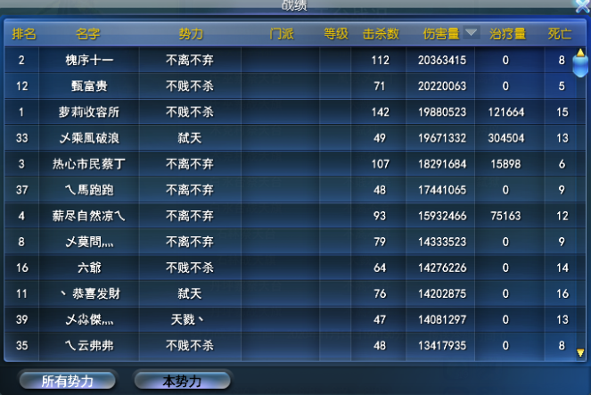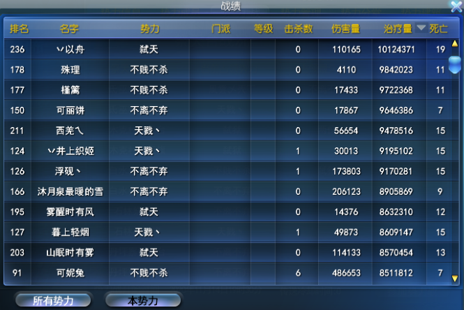 不贱不杀——治疗榜