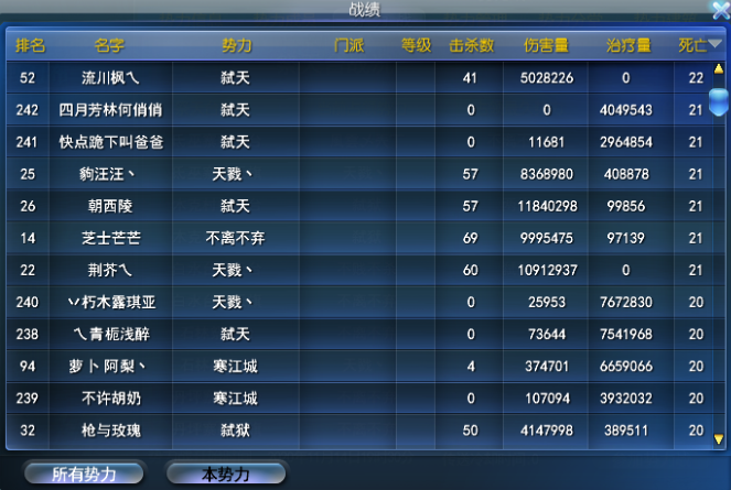 今日飞鸿势力战参战人数高达500+,双方联盟实力火拼!激情四射!
