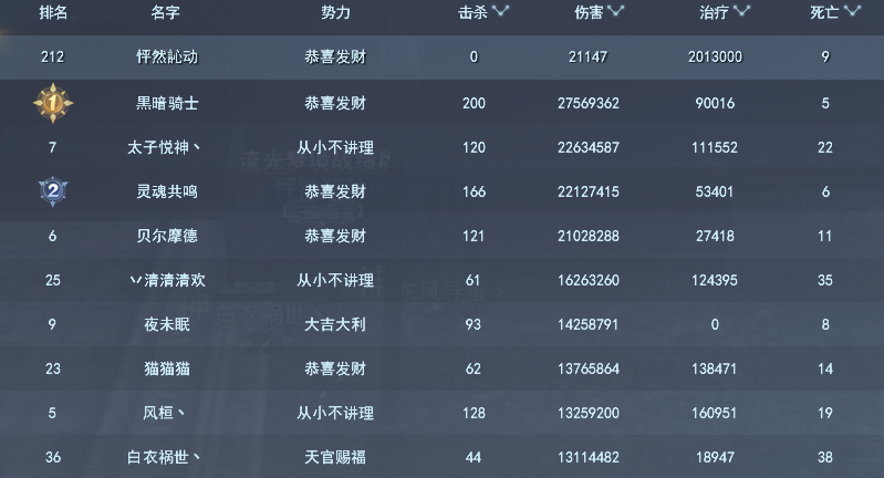 9:37分恭喜发财联盟与天官赐福联盟交战于东北金色大树附近,最终天官赐福联盟不敌被清......9:48分双方联盟交战于东南院子,最终天官赐福联盟不敌被清.....更多精彩战况,请观看战报视频!