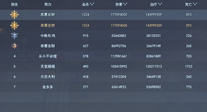 天官赐福联盟与恭喜发财联盟数次交战,战况激烈!互有输赢!