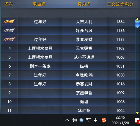 【翰书天下·战报】【巅峰时刻】【绝代风华】2021年1月20日流光战(恭喜发财)视角