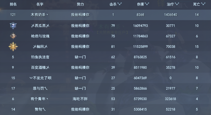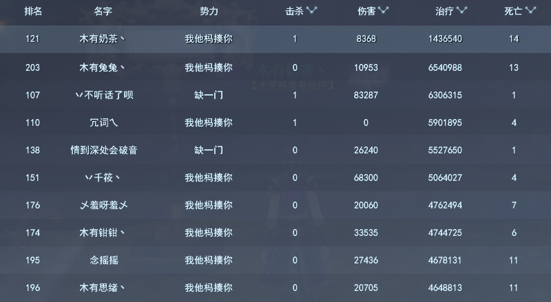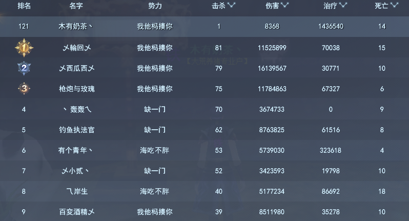 个人榜——伤害