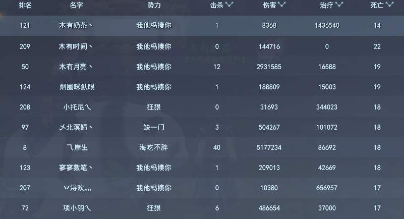 个人榜——死亡