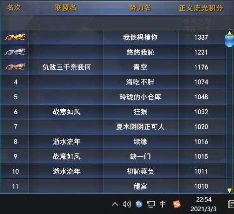 【翰书天下·战报】【巅峰时刻】【君临天下】2021年3月3日流光战(我他杩揍你)视角