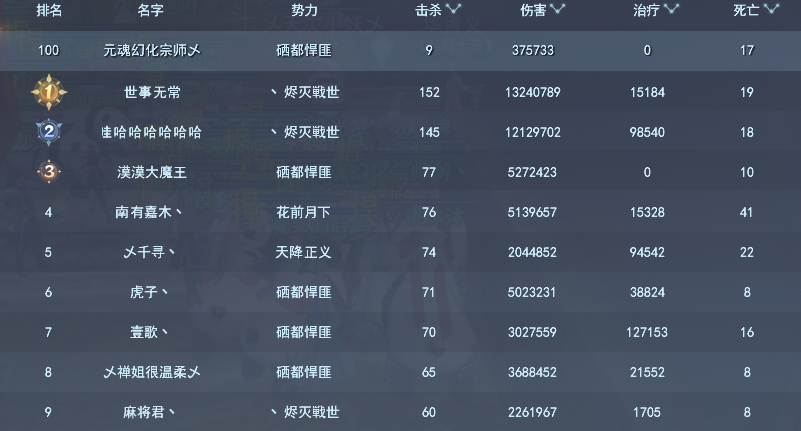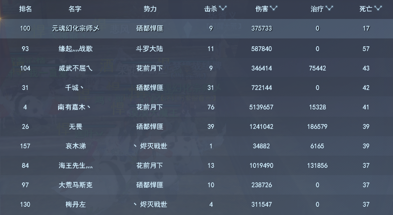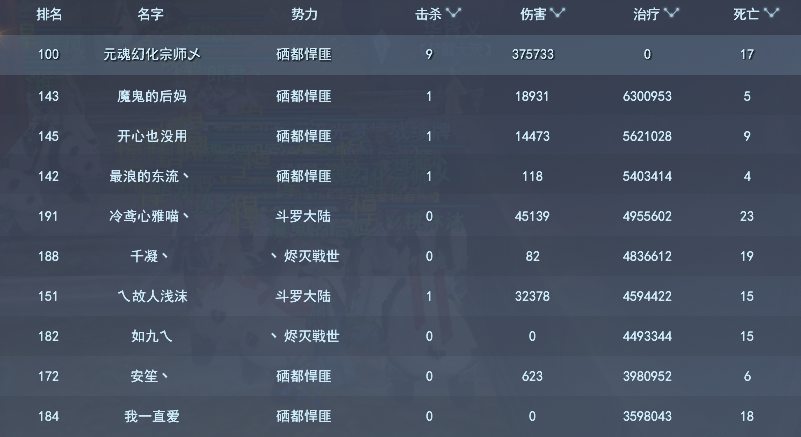 丶烬灭戦世、斗罗大陆、花前月下交战于中行智,又追击至西门,双方阵营互各有损伤,最终