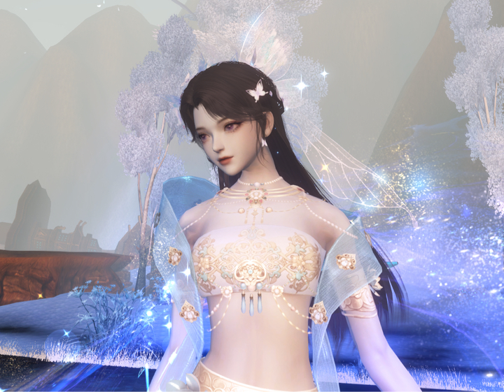 这个是鬼墨的门派脸模,寒梅疏墨影,个人感觉鬼墨适合穿深色的浓艳的衣服,浅色的特别是白色的显得很寡淡