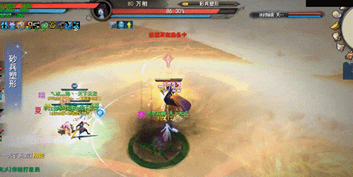 砂雨·强:群体伤害,这个技能一定要保持站位向里面,远离砂圈的边缘