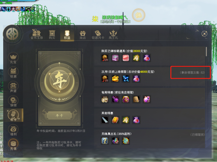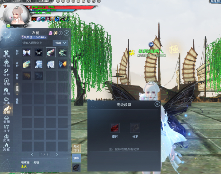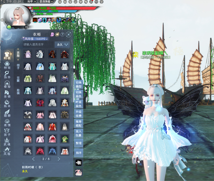 时装我只截图了永久,已经差不多三页了,全XZX来着,翅膀差传世,单色冰火被我卖掉了,双色还在,大年卡给的炼化模具和提太初的道具还在仓库,天书灵曜天魄都是5-6级,大年卡这个月刚买的,小年卡还有52次~