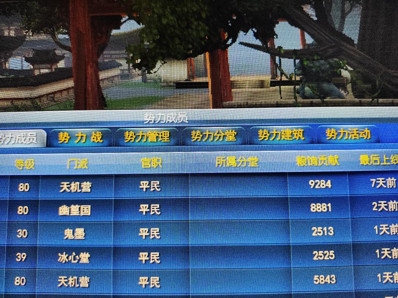 这个势力太懒了。我们势力是每天统计贡献度,低于80就警告。两次就飞人。这搁一周才统计,很多事情来不及的