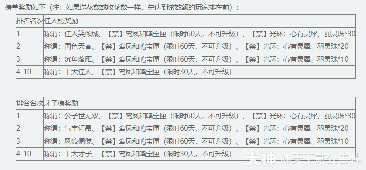 2.榜单分为才子榜和佳人榜,才子榜为活动期间送出玫瑰花数榜单,佳人榜为活动期间获赠玫瑰花数榜单。