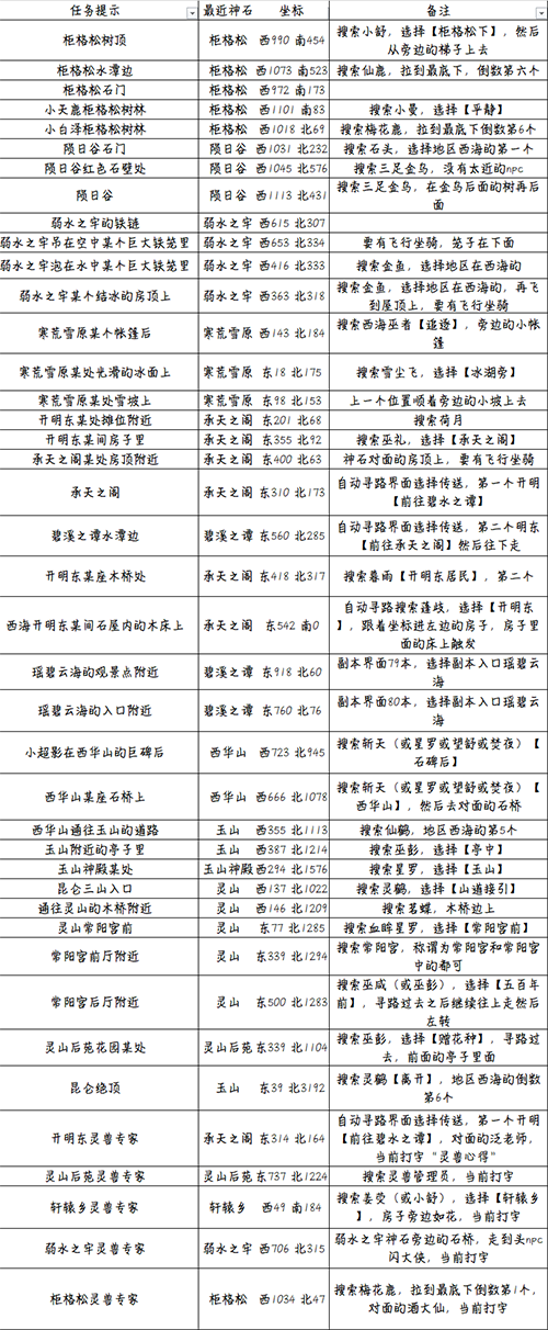 P.S.备注里是坐标附近的npc,寻路过去之后要再按照坐标找一下