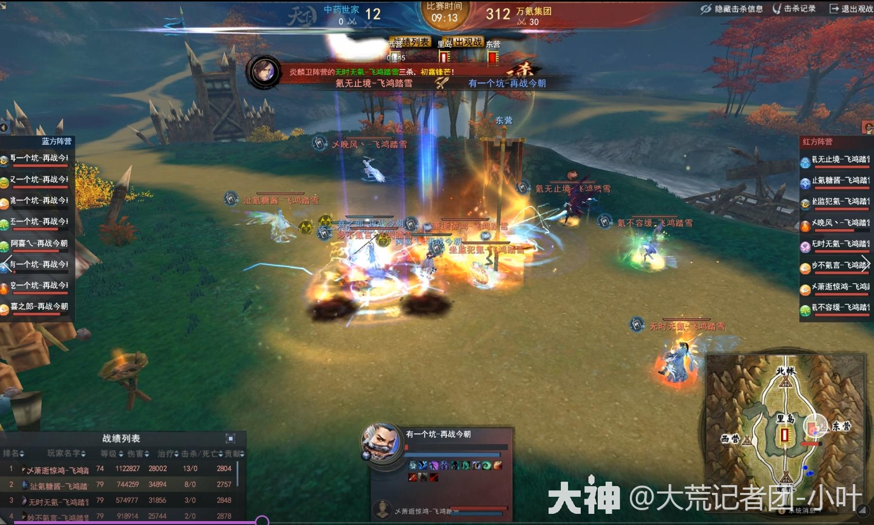 随后蓝色方集合,此时西营即将刷新,红色方抱团移动至西营洗旗,蓝色方同样从南帐赶来。红色方天机率先冲进对方人群,蓝色方云麓则开启草长立起风七,同时蓝色方另一云麓和天机紧随其后,但被红色方幽篁望舒控住,随后幽篁大伞控住蓝色方三人,使得蓝色方云麓在前方独木难支,被红色方集火打掉,蓝色方减员。西营旗子出现,占领优势的红色方逐渐将旗子洗成红色,蓝色方剩余成员虽然积极坚持对战,但在红色方默契配合下还是无奈陆续减员。
