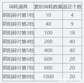开启分别可得:【禁】阴阳碎片*50/【禁】阴阳碎片*100/【禁】阴阳碎片*200。每人每个礼包限购1个,购买前置礼包才可购买后续礼包。