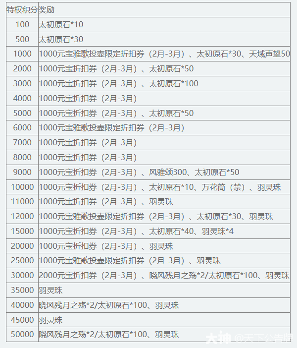 5、羽灵珠:每期满足50000积分起,每当新获得5000积分即可获得羽灵珠。