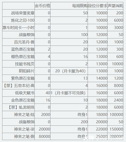 1.竞技场-竞技商店新增如下可兑换奖励
