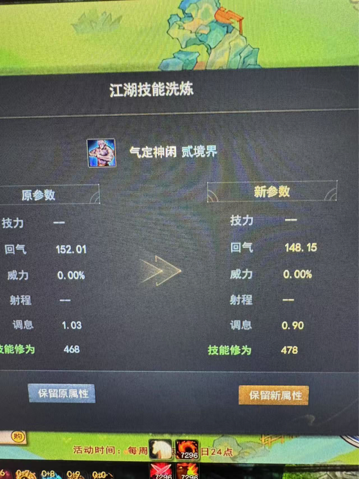 有没有各位同门分享下自己洗的极品的江湖,想对比一下看看最低回气和调息能洗到多少。附上lz自己的给大家参考