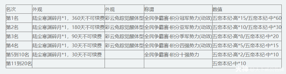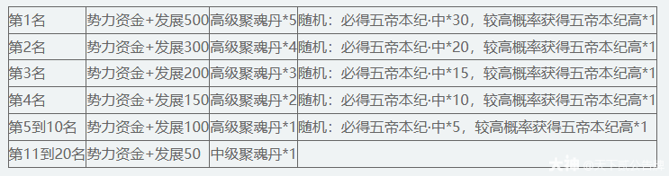 势力每周排名奖励