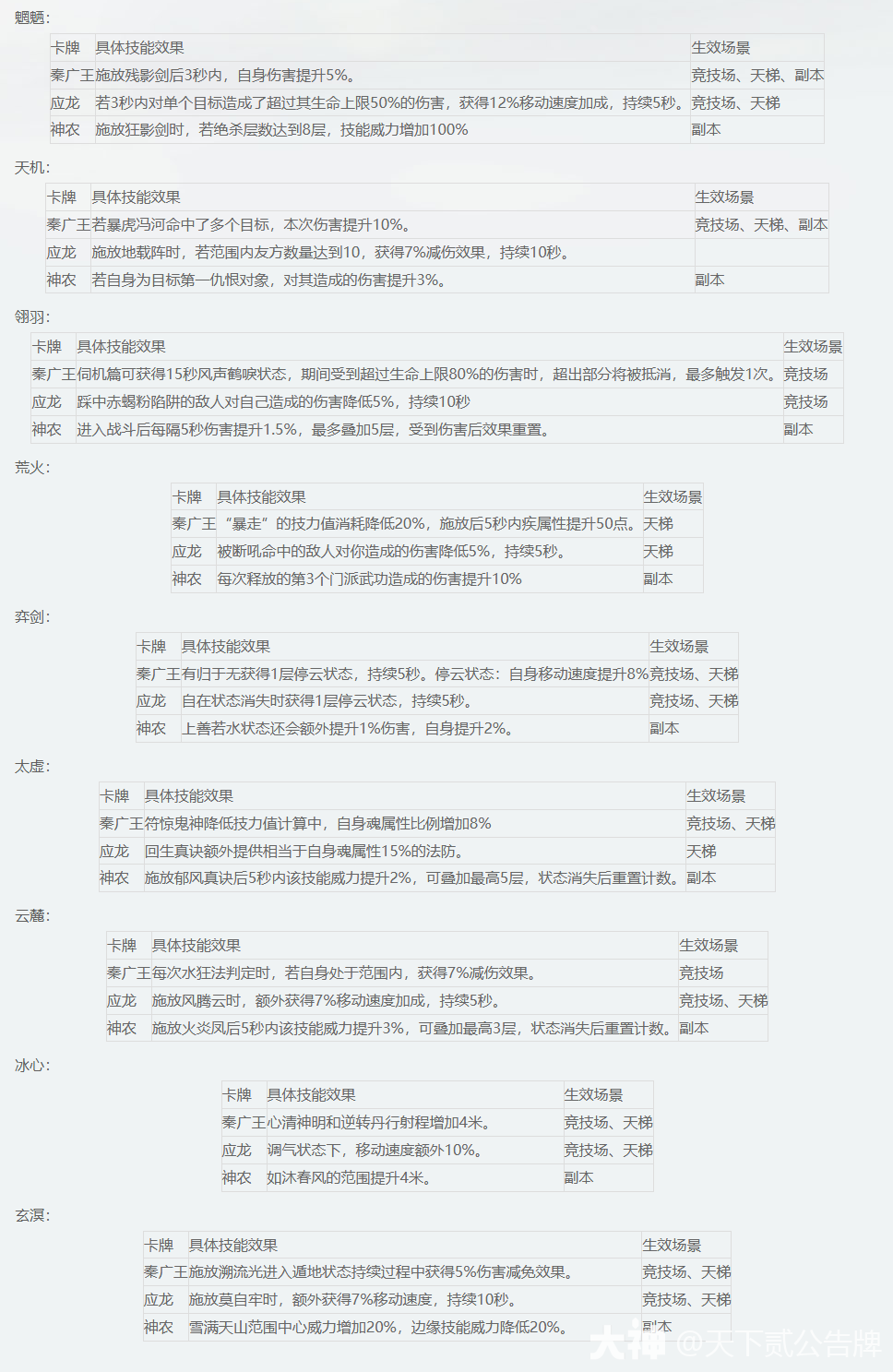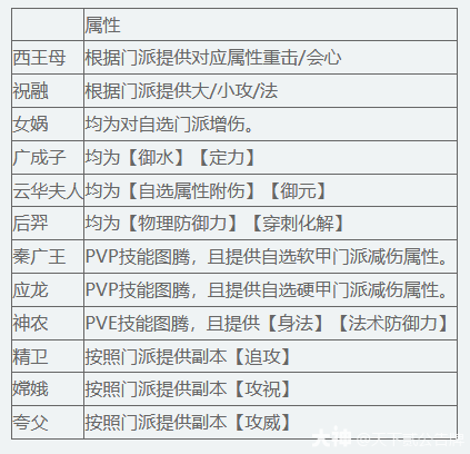 其中秦广王、应龙、神农3张紫色图腾为技能图腾,激活即可获得完整技能效果,按门派显示如下: