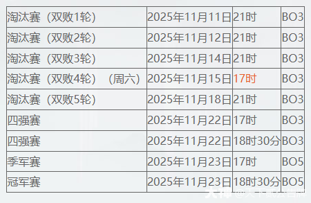 淘汰赛对阵图已优化显示具体比赛时间,赛制和时间提醒如下