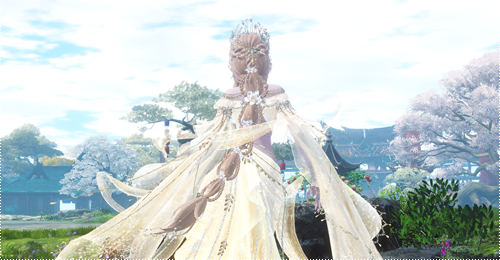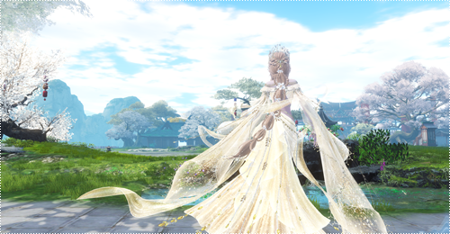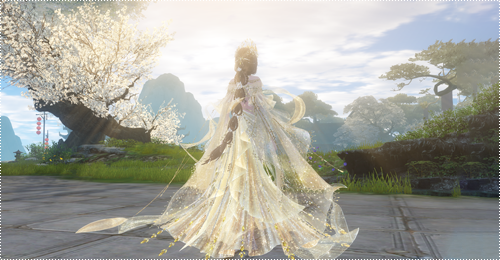 金色这套最了不起的就是光效用料十足的大裙摆和大马尾辫!原色就已经很好看了