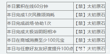 活动期间每日完成以上所有活动,可获得嘉赏自选礼包,使用后可在以下七种道具中选择一种获得:【禁】羽灵珠*4、【禁】五帝本纪·高*10、【禁】通鉴符·高*3、【禁】天璇*10、【禁】尚书令*10、【禁】乾元之气*10、【禁】草精七彩果*10。