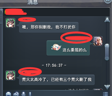 ![]() ![]() ![]() ![]() 我就想过山河任务,这种缺荒火的情况已经好多次了,我实在没办法榜上从小到大一个一个的加荒火好友。 没想到不是拒绝,就是加上以后礼貌的删除,或者过几天删除,心好累 ![]() |