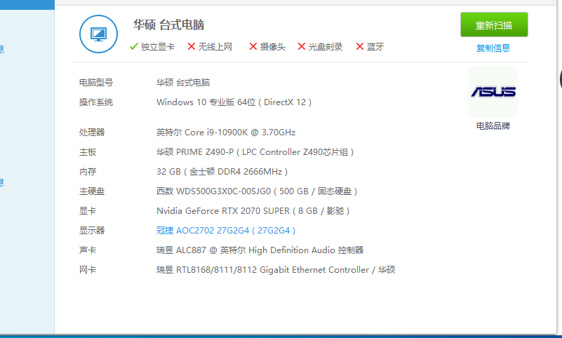 电脑配置如图,但是一进战场就莫名卡死,不响应,到底是哪里出了问题,求懂电脑的大佬给康康
