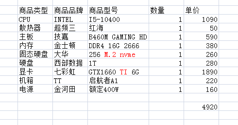 | 话说确定是10400不是10400F吗,这么便宜,如果是带核显的10400就不要那个显卡了 |