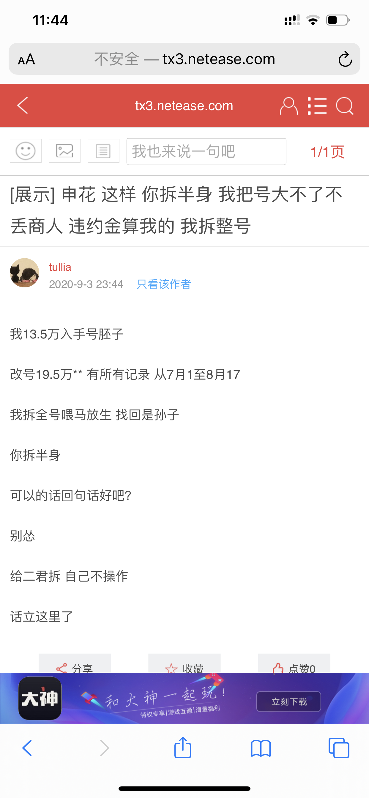| 楼主是哪个号啊?如果是1V1的拆的话,我支持楼主。 |