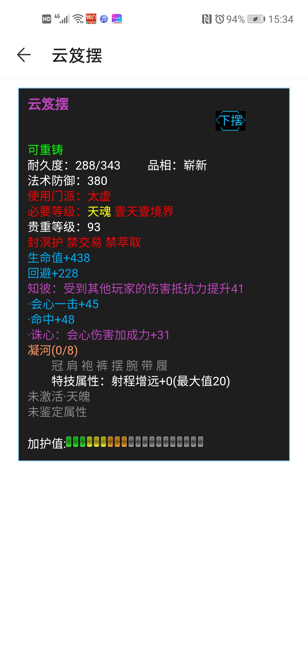这个是战场套的如果没有80战场套的话升级装备跟战场套80一样,买道具,直接合,但是普高究属性万花时间洗,8件装备换下来差不多要25到30万声望,洗普高究完全看脸,我洗了300多万的战场的装备也就那么回事,换的话军姿一件平均200大洋,值得一提的是直接合成的天魂战场套没有天魄孔,需要自己加下来大概要花10000多军姿的样子 |