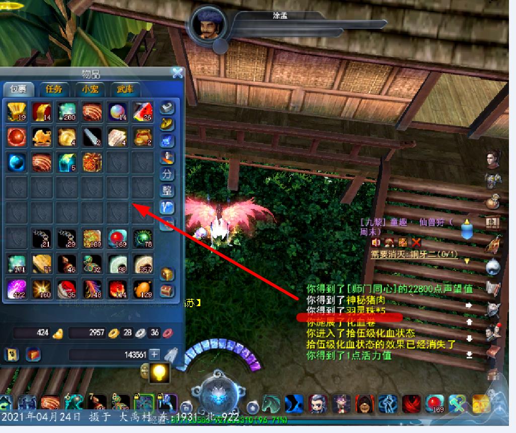 卖个猪头肉。得了神秘农药和羽灵珠。但是包包没有珠子。只有农药。