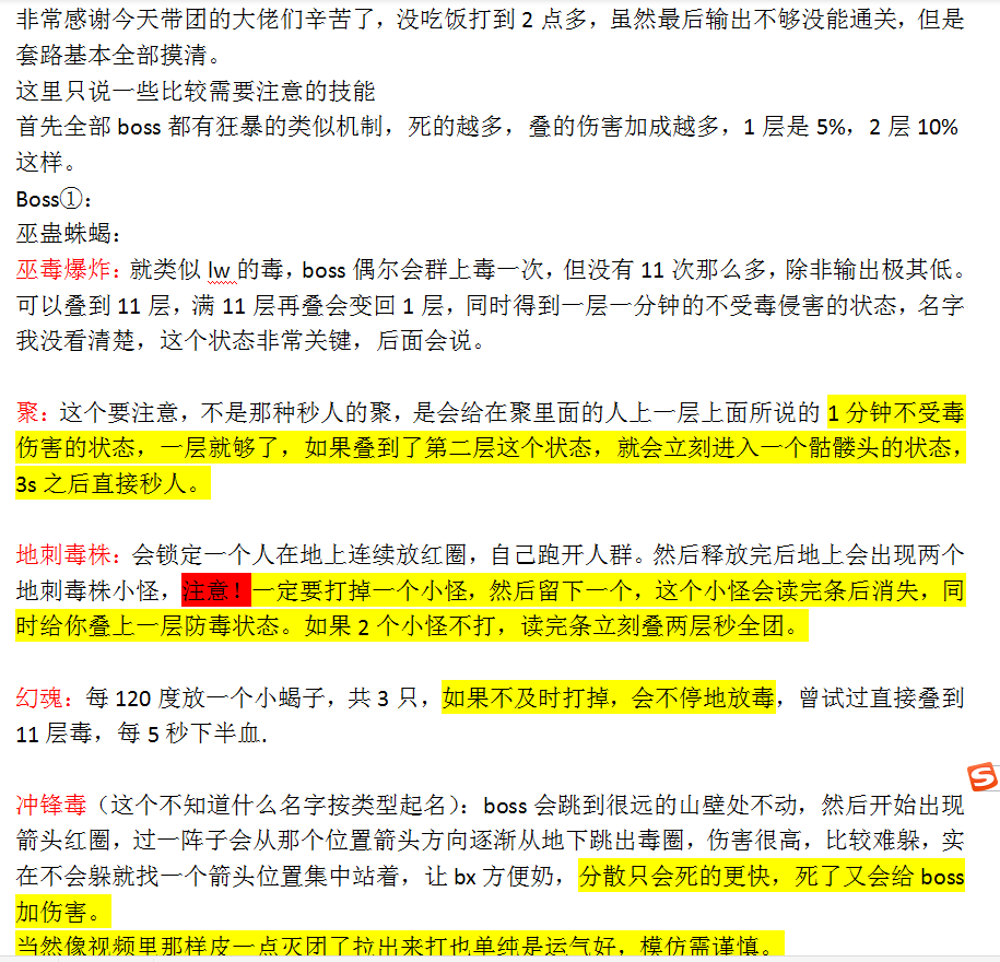 潇風澜 发表于 2021-7-15 01:19 打到超剧毒了说明你们输出不够了,那个技能相当于狂暴了,在那之前必须打死,不然buff啥的都没用全团死 |