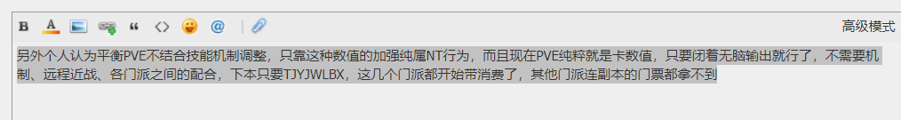 超凶QAQ 发表于 2021-9-24 17:38 怎么只看到别人有的?比如67本刷阴阳碎片,魍魉带吸血,幽惶带吸血,还有天机都是比较容易单刷的,yj就比较困难,79经验本,75经验本,小怪比较多。yj输出就比魍魉,云麓幽惶少了很多,难道你眼里的副本,只有你认为的几个?术业有专攻你懂不?现在个别副本无小怪,只有单个boss,你就眼红这几个单体伤害高的职业了?以后出了其他类型副本,需要群怪的时候,你还会替你现在喷的这几个职业发声么?总要拿自己的短处比别人的长处?你是太自卑了么! |