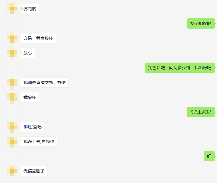 下午在地区卖东西,本想卖金币的,有人密语我要走线下,说了价钱后也不还价,让我直接交易然后转账给我,具体看图吧。提个醒,千万不要线下交易!非得线下交易也要找个靠谱的担保,要加浣熊企鹅的基本都是骗子!