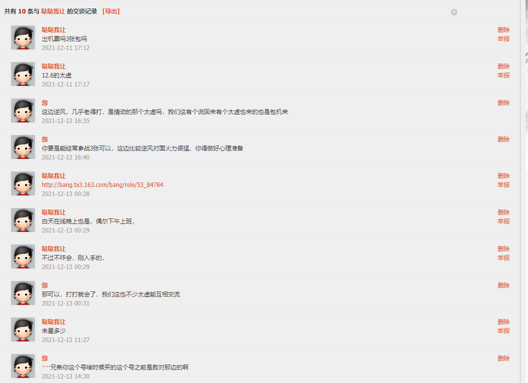 酱油死神 发表于 2021-12-22 00:15 这个号之前不玩了挂藏宝阁,时间是12.9-12.21都挂在藏宝阁。 就你们自编自导说要三张机票的时候 12.12 。这个号都一直在藏宝阁没动过。直到昨天12.21才拿下来,飞了紫禁。 你自己把时间点搞搞清楚再出来黑人,你这个人就搞笑你知道吧 |