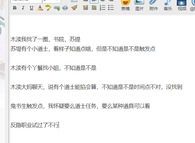 目前已知信息: 鬼新娘,在西湖亭子,叫莺莺, 会让人帮忙找相公 鬼书生,在万松书院,叫君瑞,非说别人看不到他 鬼书生是进京赶考,然后没了,怎么没了,没找到线索 鬼新娘怎么没了,不知道 |