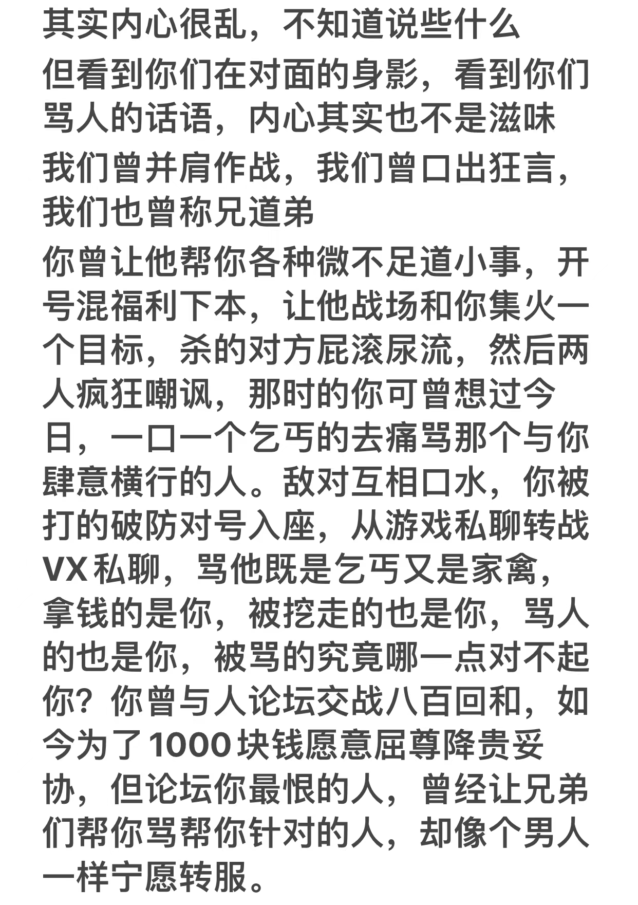 顺风的时候 骂盟友可不是这副嘴脸 逆风了打感情牌 自己恰了多少烂钱啊怎么好意思说别人 |
