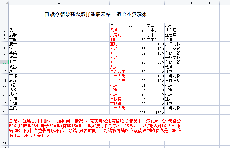 我有个0氪金的副本套,目前榜念1520 全身8左右 个别9钻~一件蓝沁都没穿~太贵了
