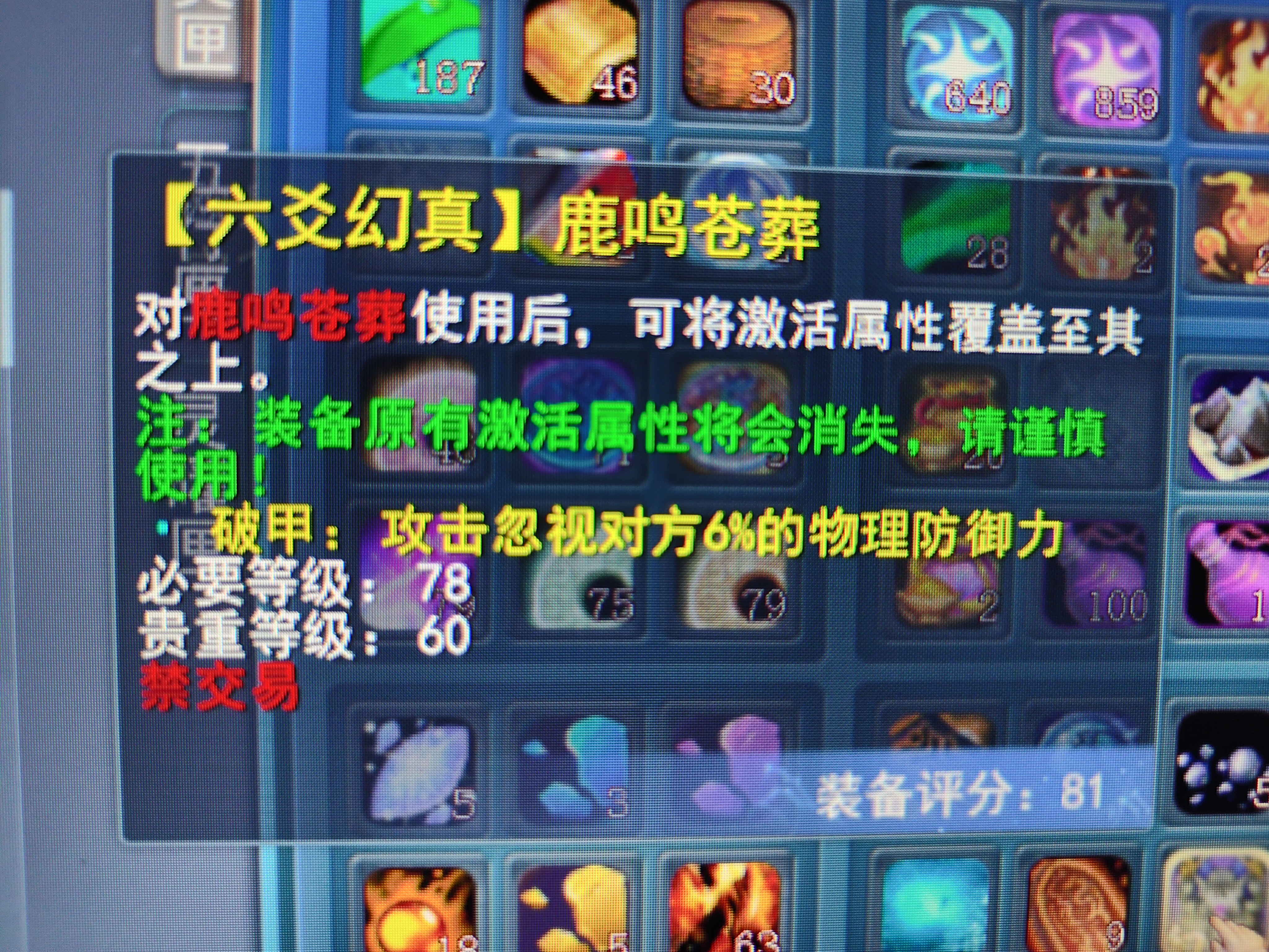 H_M 发表于 2022-7-3 00:48 浙江 先打在天机副手上,然后把6%破甲花1200军姿提取出来,转了羽毛副手,再把提取的6%破甲打上去就行了,新出的一个道具,貌似叫六爻幻真符 |