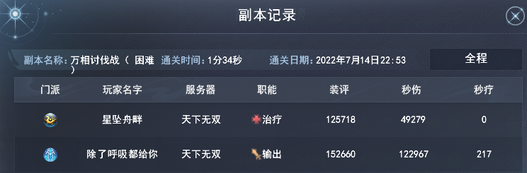 Saadiyazh11 发表于 2022-7-16 15:14 不是,现在还以装评来看输出吗?肯定是以装备属性方向啊,具体我也解释过了,我们团的wl是打战场的,副本方向投入不多,喊他来是更方便叠气绝,他而且没开合体,我是合体全状态+听雨剑+太虚酒。如果你要客观的对比你,起码你要拿同档次的副本wl来比才行,比如副本wl的顶流简单派,坦白而言,我比不上他,我有自知之明。 |