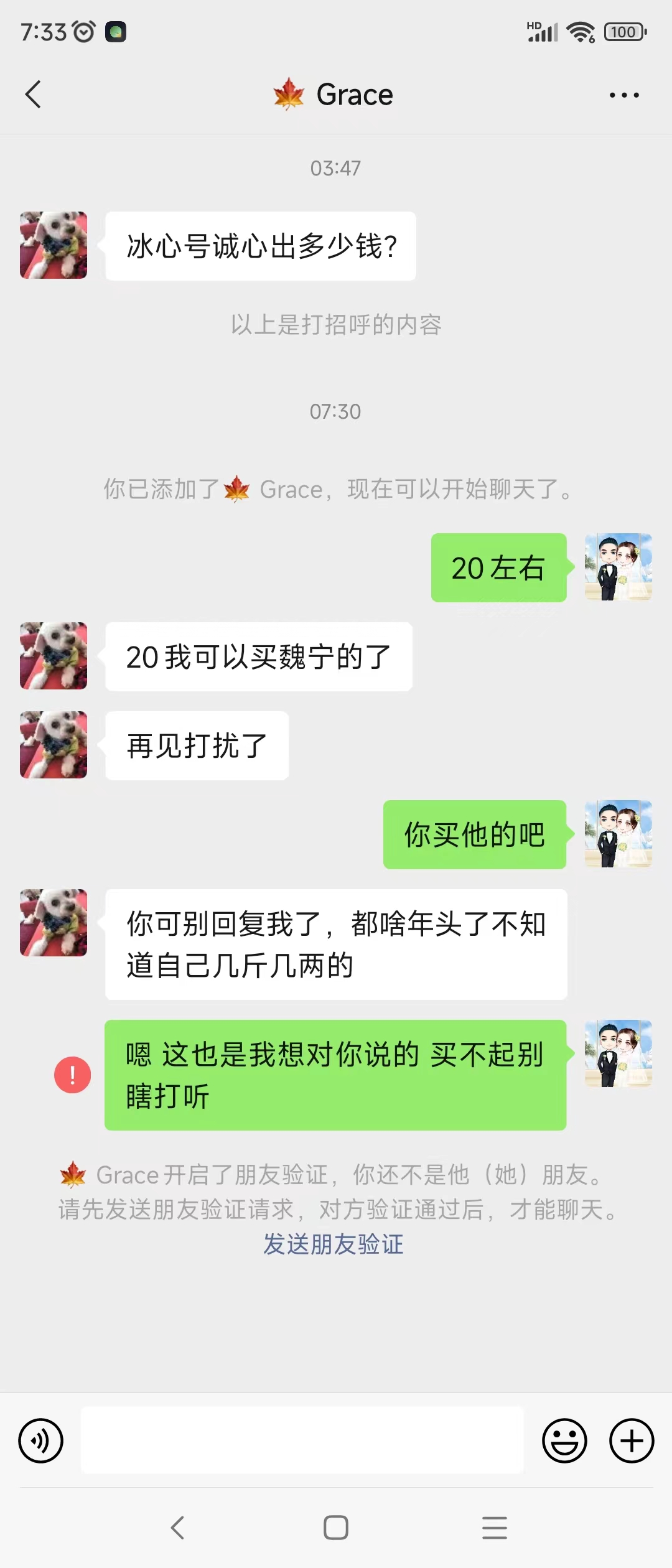 买家说的话前后加起来还没卖家一句话多呢,而且也没说买不起,这么给自己脑补卖家说你买不起,真的,有钱不差这几万就别讲价了,用来刷血cbg那么多不到20万的号不是都可以,挑啥呢。说人家回复你烦,人不回复是不是又是看不起你了 |