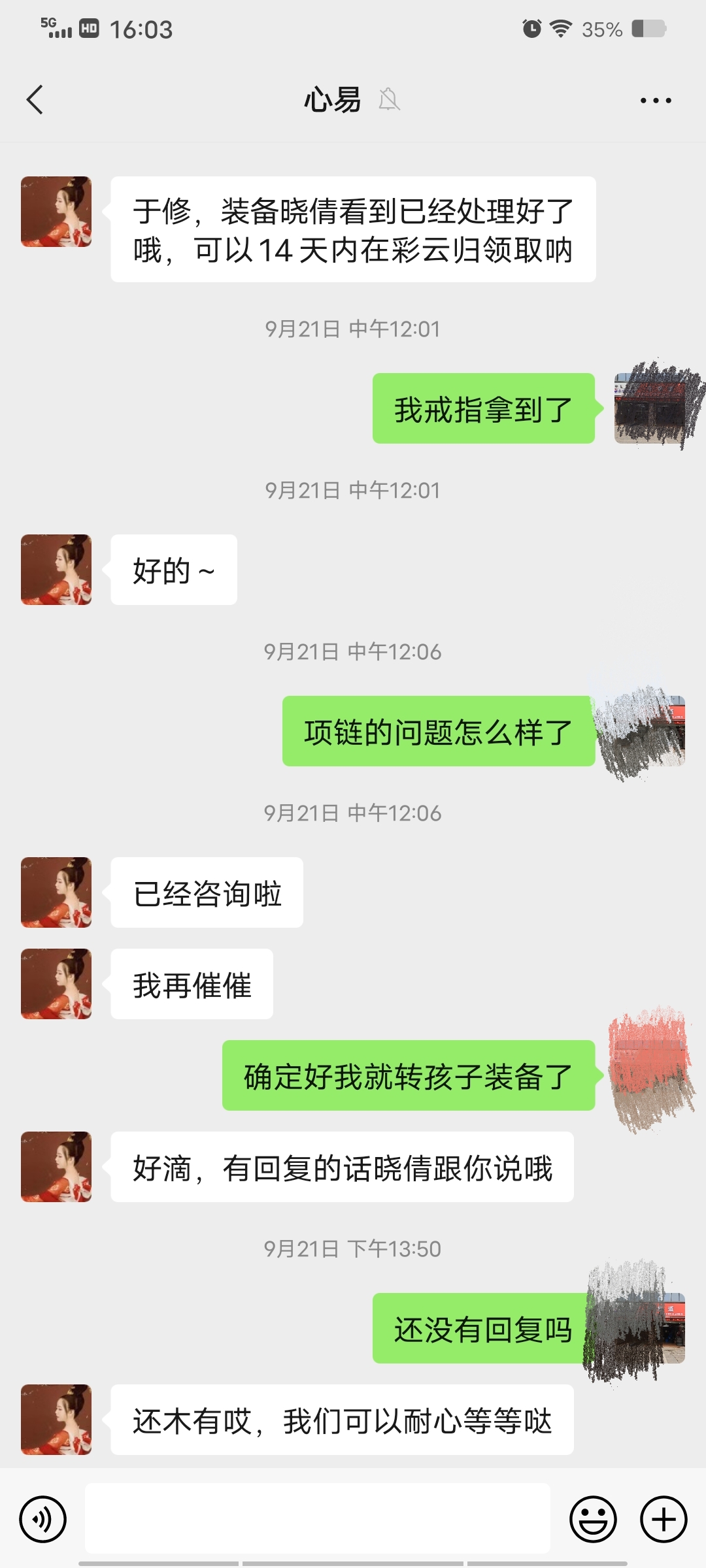| 熊猫无法回答孩子装备的问题,只回答是人物装备4代升级五代是普高都有的,转成孩子再升级到底有没有无法回答,这才再三跟心易确认, |