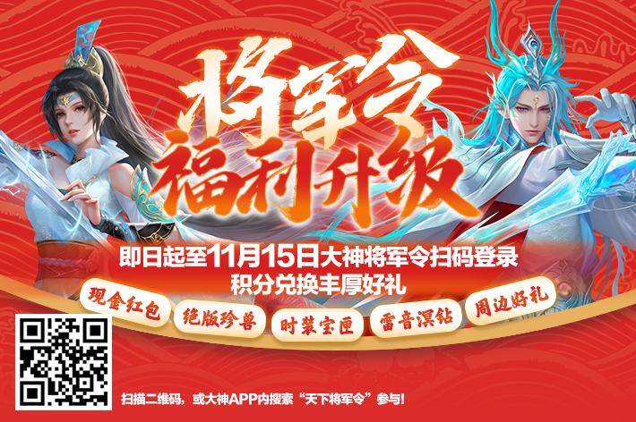 猫捡球 发表于 2022-10-8 20:13 辽宁 ![]() 根据各位少侠的反馈,将军令活动福利升级,即日起至11月15日都可以参加哦! 点击链接即可跳转参与!https://act.ds.163.com/efaee2270f152177/6335992ede624c00015e37cb |