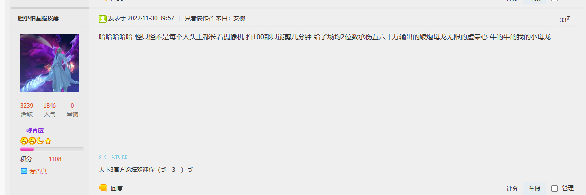 fengche1991 发表于 2022-11-29 19:47 四川 你理解能力不强就不要在论坛秀自己的智商,可以不,没有护心早被弈剑秒了,还蹦跶个什么? |