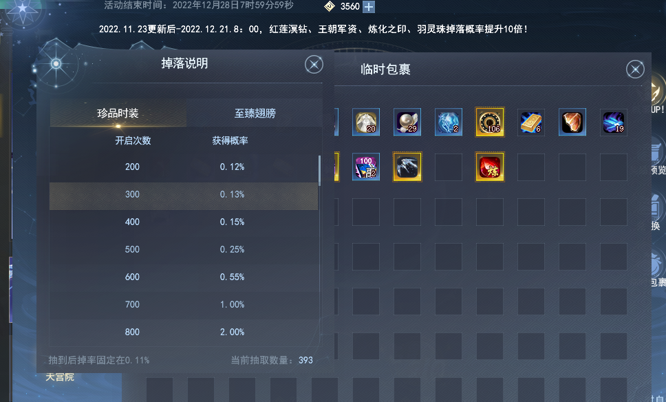 417手出1翅膀,1箱中箱,1红钻,图也够了,不过图被我换瑞金了![]() |