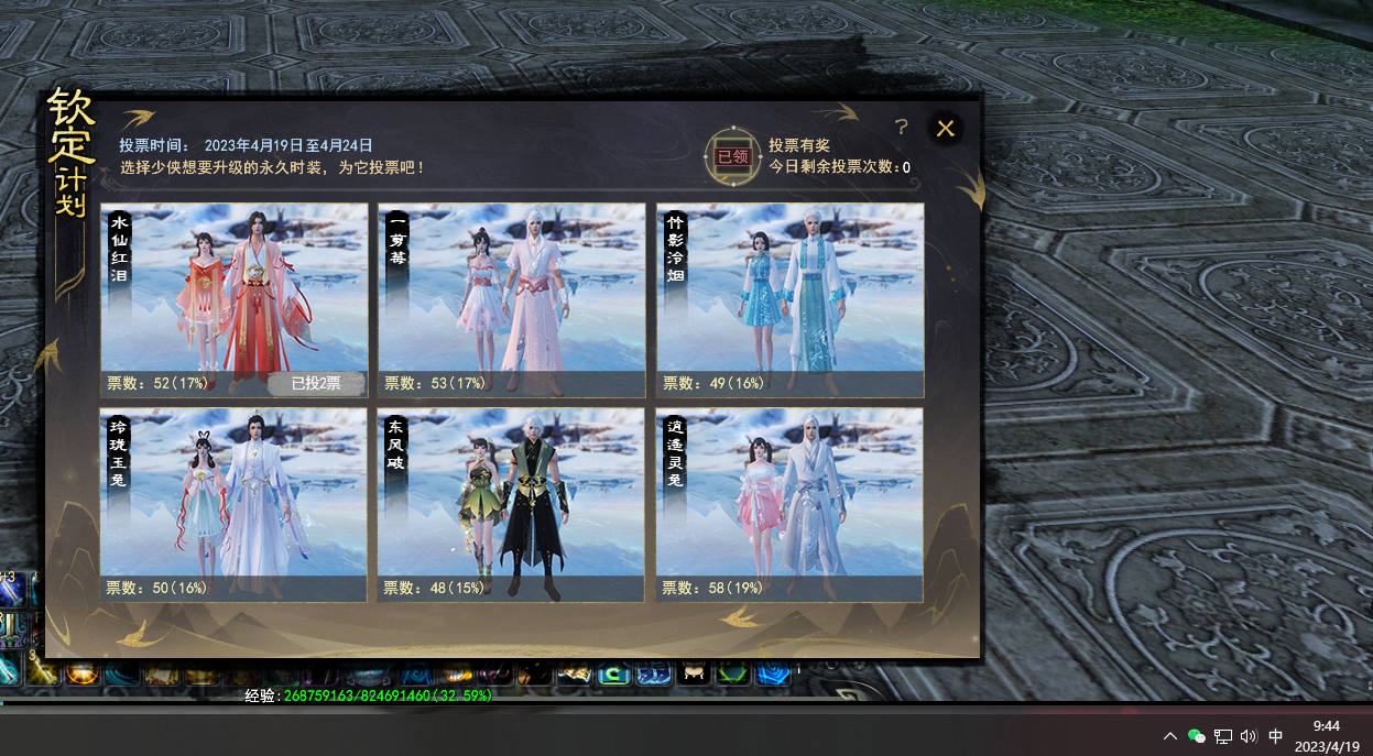 10点的时候登上来,那个兔兔已经几千票了,而且40以上的比例,我没说有人操控,但是感觉这件并不出众的时装比例奇高有点不可思议,一剪梅就比兔子好看多了但是没票![]() |