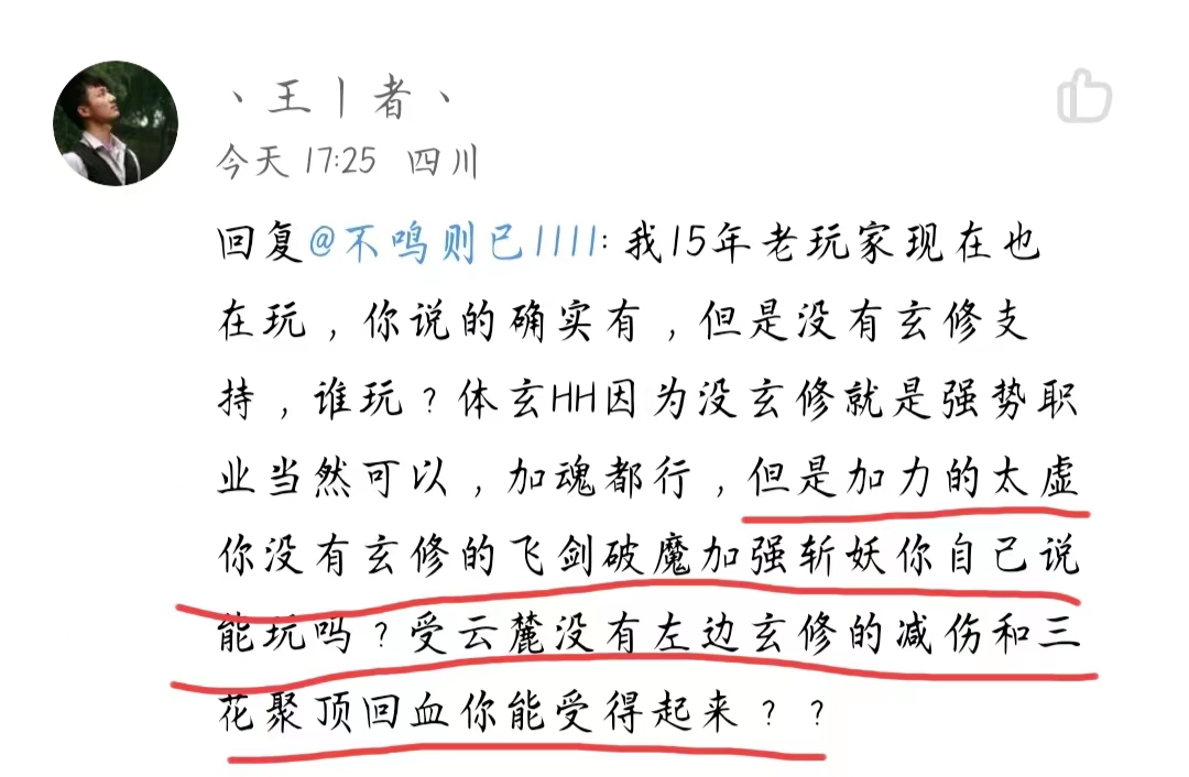 丨玄夜、 发表于 2023-6-21 08:39 江苏 他要是十五年前的老玩家,他就不会说出力太虚要考飞剑破魔这么低级的话了。 |