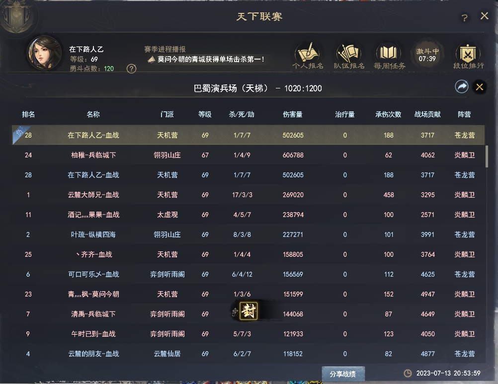 第一名才是你的一半输出啊,你这么猛